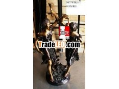 TWO GIRL HOLDING A LIGHT BROonZE STATUE1) BEAUTIFUL FINISHING.