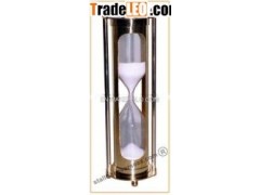 - This is the solid brass sand timer of 15 minutesin full brass jacket. Its cabinet has four thinner rods in roundpipe. It has solid brass round coverings on top &bottom.
